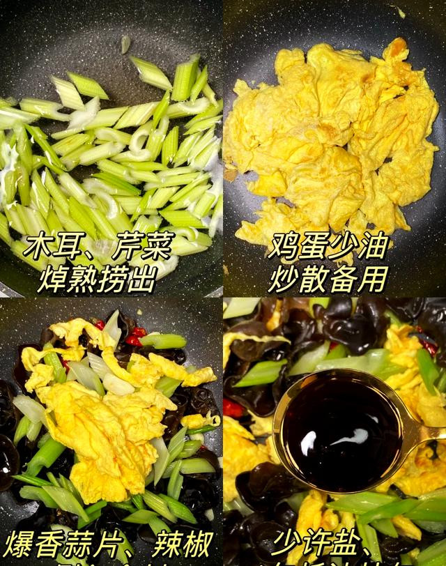 还有一些改造,比如用发酵黑豆干替代世俗香干,益菌多多,肠胃也怡悦;黑木耳和芹菜的组合,增强解毒作用。